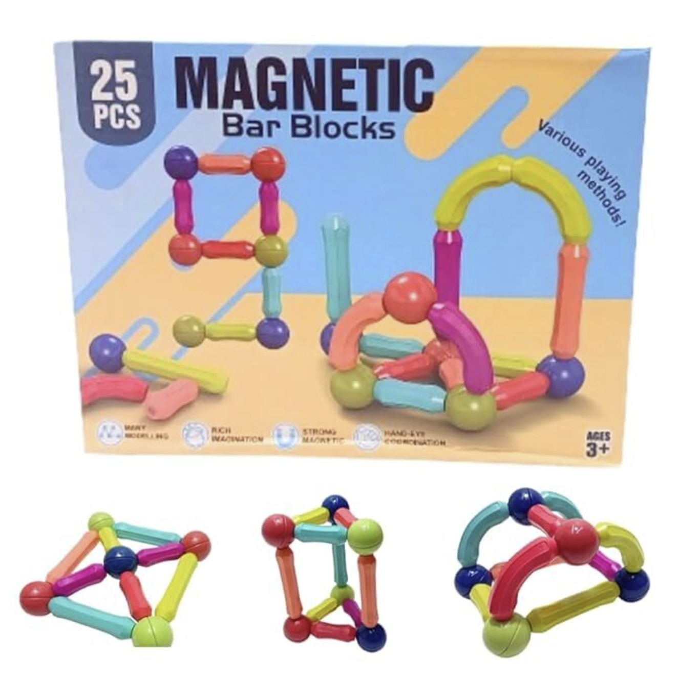 Powerful magnets allow sticks and balls to connect easily, creating stable 2D and 3D structures.